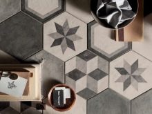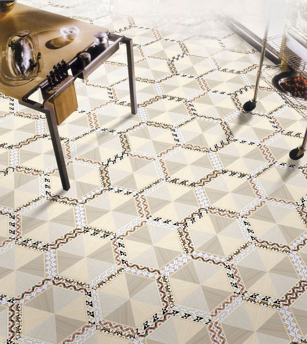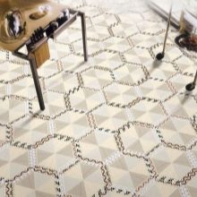 Derzeit gibt es viele Arten von sechseckigen Fliesen Hersteller, die bereits Ornamente und Muster angewendet hat. Zum Beispiel sehen Modelle mit einem Muster heller aus. In der Regel wenden Hersteller asymmetrische und abstrakte Muster an.. Geometrische Formen und gerade Linien werden nicht verwendet, um eine solche Fliese zu dekorieren, da sie bereits viele rechte Winkel aufweist. Außerdem verunstalten sie optisch seine schöne Form.