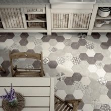 Außerdem können Sie die kleinste Fliesengröße von ca. 5 cm und größere Artikel mit einem Radius von bis zu 15 cm wählen, da die technischen Eigenschaften der hexagonalen Modelle hauptsächlich davon abhängen, welches Material zu ihrer Herstellung verwendet wurde. So wird eine sechseckige Fliese aus hochwertigem Ton hergestellt und durchläuft mehrere Brennzyklen, da dadurch ihre Zerbrechlichkeit reduziert wird.