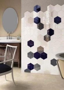 Sechseckige Elemente unterscheiden sich sehr von anderen Modellen. Dies betrifft vor allem den Styling-Prozess sowie äußere Qualitäten. Die ungewöhnliche sechseckige Form ist heute in Mode und ersetzt oft klassische rechteckige oder quadratische Keramik.Der Hauptvorteil ist daher die Relevanz und Originalität einer solchen Beschichtung.