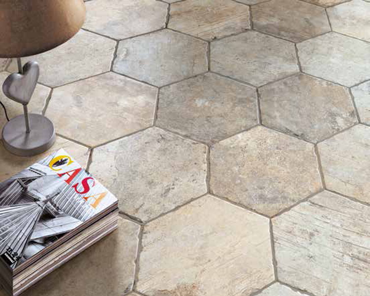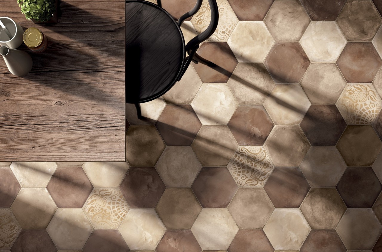 Italienische Marke Impronta vertraut auch auf die Qualitätsmerkmale von sechseckigen Fliesen. Diese Modelle bestehen aus Kohlenstoffelementen. So bleibt auf der Oberfläche ein Schutzfilm. Aber dank dieser zusätzlichen Beschichtung, die auch eine dekorative Rolle spielt, wirken die sechseckigen Modelle stilvoller und interessanter. Solche Modelle umfassen im Wesentlichen Keramik und Porzellan.