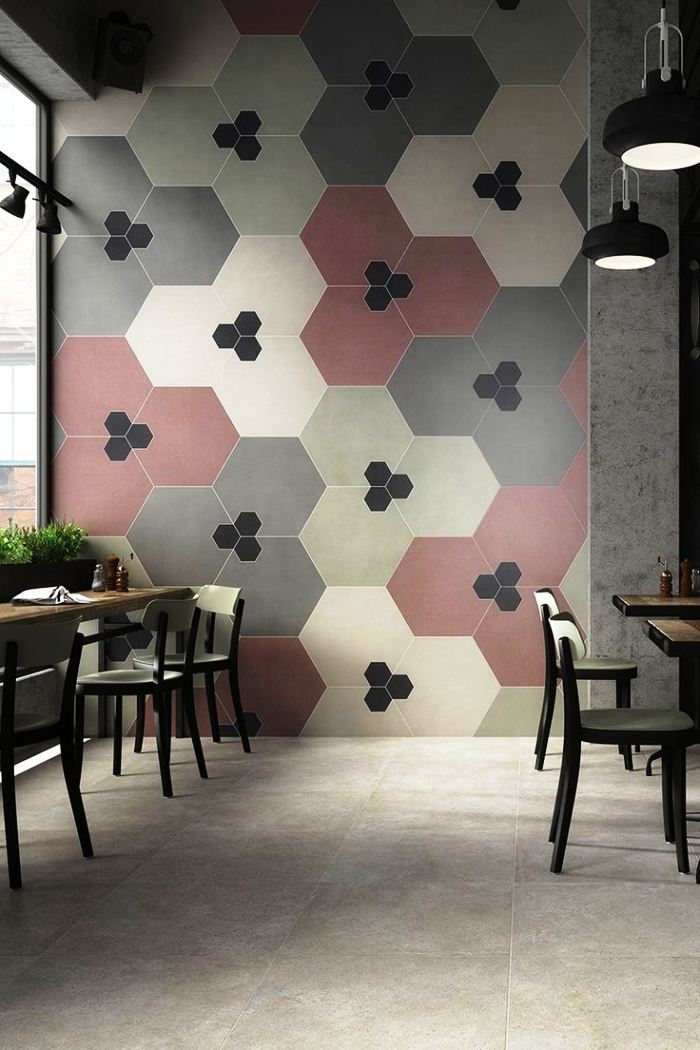 Hexagon-Muster sehen interessanter aus als andere Arten von Fliesen. Es ist auf viele verschiedene Arten kombiniert.