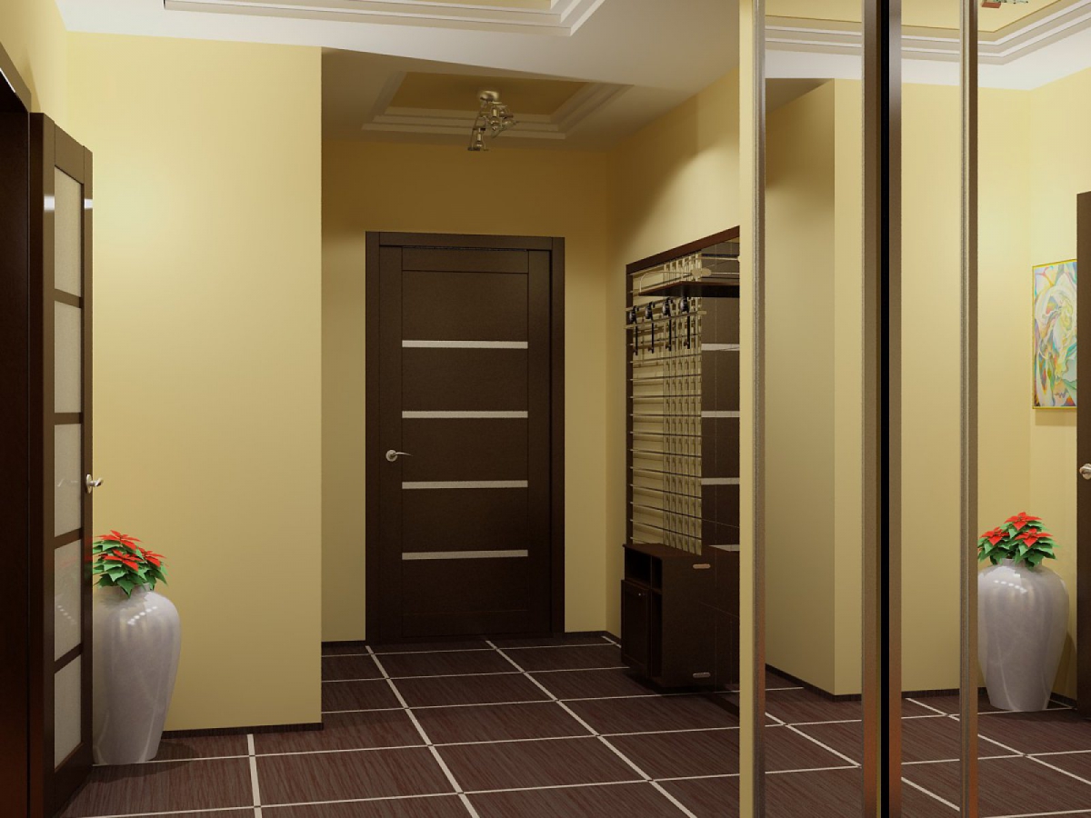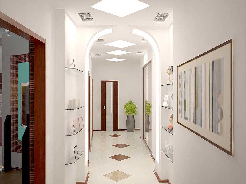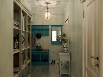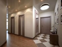 Korridore sind durch die Verwendung von farbigen Beschichtungen in versetzten Mustern oder Diamanten diagonal gekennzeichnet. Die beliebtesten Modelle für solche Räume sind grau, braun, beige, Terrakotta, dunkelgrün. Gleichzeitig bevorzugen nur matte Fliesen.