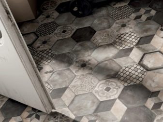Wenn der Kleber trocken ist, wird es möglich sein, die Nähte zwischen den Elementen der Fliese zu verarbeiten. Es ist besser, einen Gummispatel zu verwenden. Es wird die Bodenfläche im Flur nicht beschädigen und wird es vollkommen glatt machen.