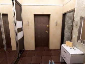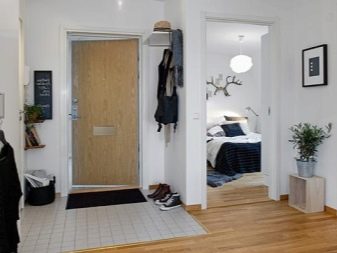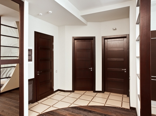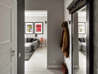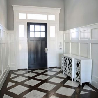 So können Sie fast identische Modelle für Holz oder Laminat visuell finden und verwenden Sie die gleiche, aber natürliche Beschichtung ein wenig weiter vom Eingang. Es ist wichtig, die Materialien richtig anzupassen und die geeigneten externen Eigenschaften des Modells auszuwählen.