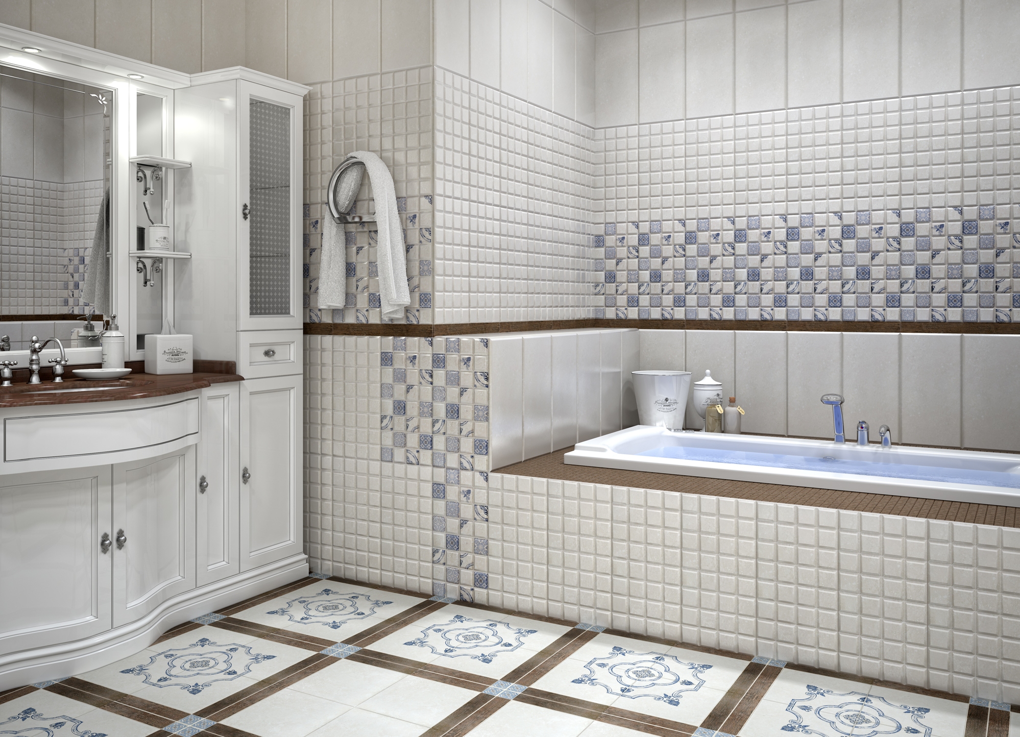 Ein weiterer Unterschied ist Erleichterung. Modelle mit einer volumetrischen Textur werden immer im Badezimmer platziert und sie legen niemals glatte Fliesen, da es wahrscheinlich rutscht.Im Flur ist es unpraktisch, Fliesen mit dreidimensionalem Relief zu verlegen, da sich dort der ganze Schmutz ansammelt, den Sie von der Straße auf die Schuhe bringen.