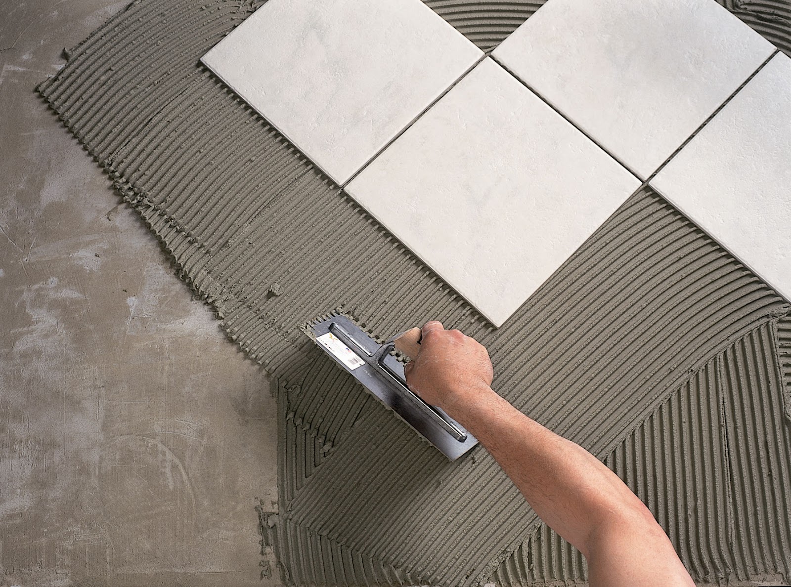 Es sollte auf dem Boden und dann auf der Fliese aufgetragen werden. Zur gleichen Zeit ist es notwendig, es allmählich zu machen. Sie sollten nicht zuerst den gesamten Boden mit Klebstoff abdecken und dann die Fliese verlegen.