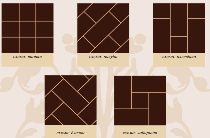 Bei der Kombination verschiedener Bodenbeläge kann eine direkte oder figürliche Trennung oder ein Übergang erfolgen. Im Falle einer linearen Unterteilung sollten die Begrenzungen gerade und gerade sein, aber wenn Sie eine figürliche Grenze erstellen, sollten Sie die Materialien richtig schneiden und die notwendigen Berechnungen vornehmen.Aber der Innenraum wird origineller und stilvoller aussehen.