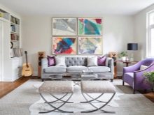 - Unter den weißen Möbeln ist es besser, Gemälde mit einem weichen Druck zu wählen und sie um den Umfang herum zu platzieren. Somit wird das Innere nicht mit dem Hintergrund verschmelzen.