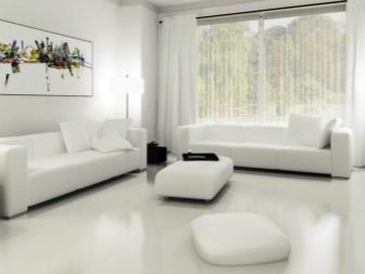 Ein so gestaltetes Apartment oder Haus wirkt elegant und sogar feierlich. Auf einem schneeweißen Hintergrund erhalten alle Farben zusätzliche Helligkeit. Die Umrisse von Objekten sind vollkommen klar und ausdrucksstark.Besonders beeindruckend in diesem Interieur sieht aus wie Kunst. Deshalb werden Gemälde und Kunstfotografien oft verwendet, um Wände zu dekorieren, und Vasen, Figuren, Sammlerstücke werden als Dekor verwendet.