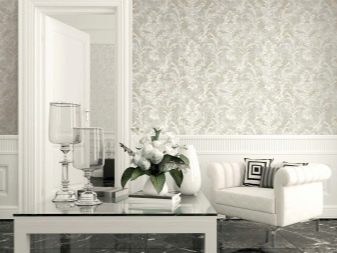 Die weiße Farbe ist neutral. Es beruhigt, beruhigt, verursacht Assoziationen an Reinheit und Frische. Die schneeweiße Situation wirkt sich günstig auf den psychischen Zustand eines Menschen aus, schafft eine harmonische Atmosphäre. Weiße Tapeten werden verwendet und um den perfekten Hintergrund zu organisieren und luxuriöse Interieurs zu schaffen.