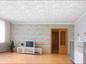 - Außerdem kann das Material kleine Defekte und Unregelmäßigkeiten der Wände verbergen, und dank seiner Plastizität können Sie sogar gerundete Oberflächen kleben.