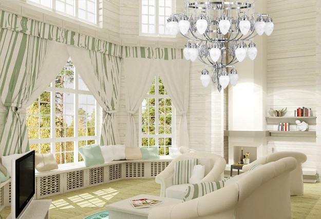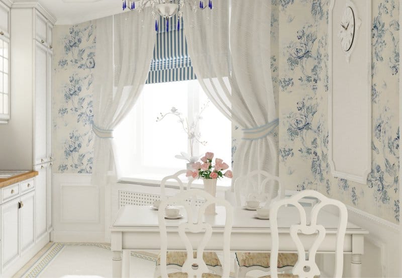 - Helligkeit. Drinnen mit viel Weiß ist immer Licht, und das ist ein Pluspunkt. Befindet sich der Raum jedoch auf der Südseite und wird er tagsüber einfach mit Sonnenlicht überflutet, kann die Wirkung ungünstig sein. Übermäßige Helligkeit erzeugt große Spannung für die Augen und ermüdet schnell. In solch einer Situation wird empfohlen, glänzende Oberflächen zu vermeiden und die Atmosphäre mit gedämpften, dumpfen Tönen zu verdünnen. Eine gute Option wäre, eine Tapete mit einem nicht zu bunten Muster oder eine Kombination aus einer weißen Beschichtung an der gleichen Wand mit anderen Farben im Rest des Raumes zu wählen.