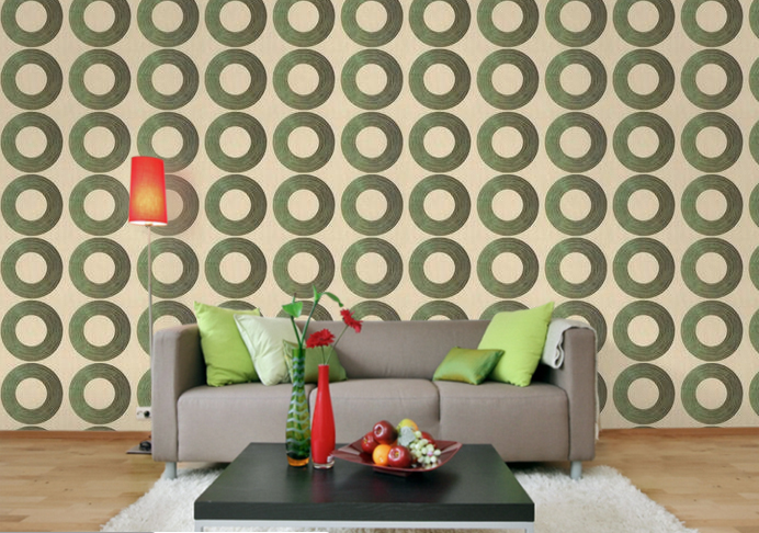 Vinyltapete "Kreise" sehen besonders und pikant in fast jedem Interieur aus. Sie sind sehr texturiert und können Unregelmäßigkeiten auf der Oberfläche der Wände verbergen.