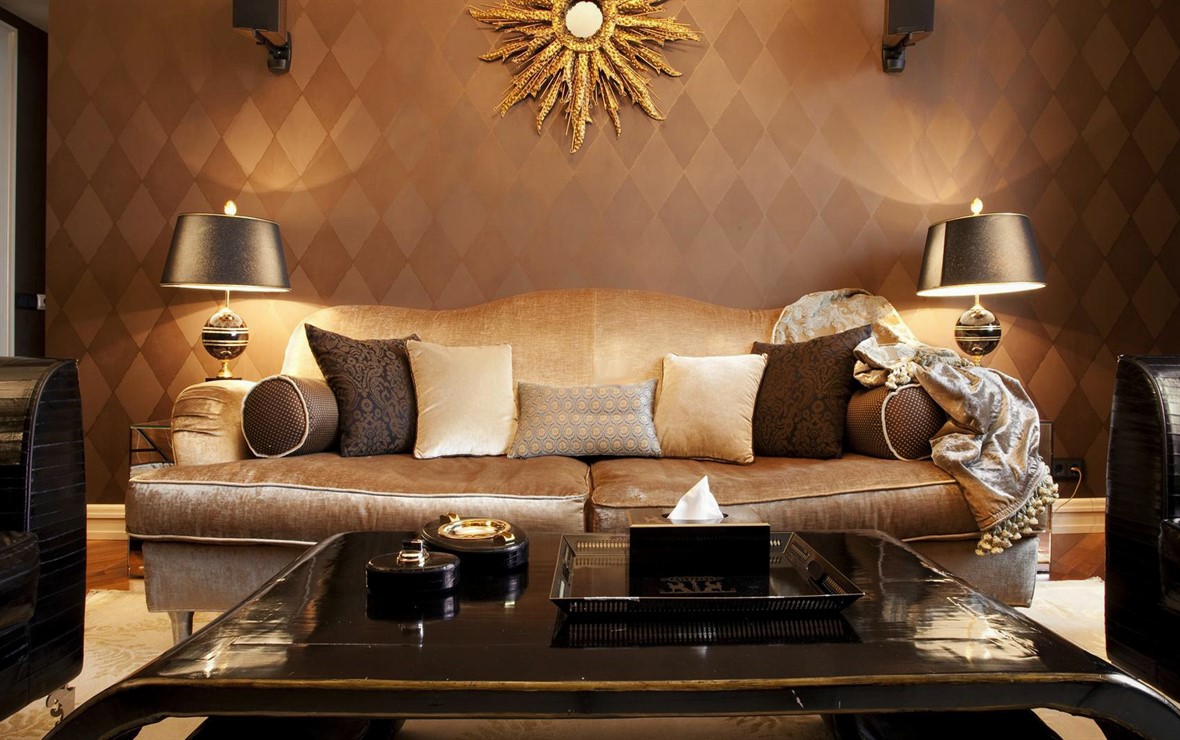 - Kleine Ornamente und ruhige Farben eignen sich für kleine Räume, und großformatige Zeichnungen und Avantgarde-Muster schmücken Hallen mit hohen Decken.