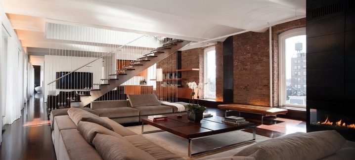 - Imitation von Ziegel oder Gips auf der Tapete mit Heißprägung passt perfekt in den Trendloft.