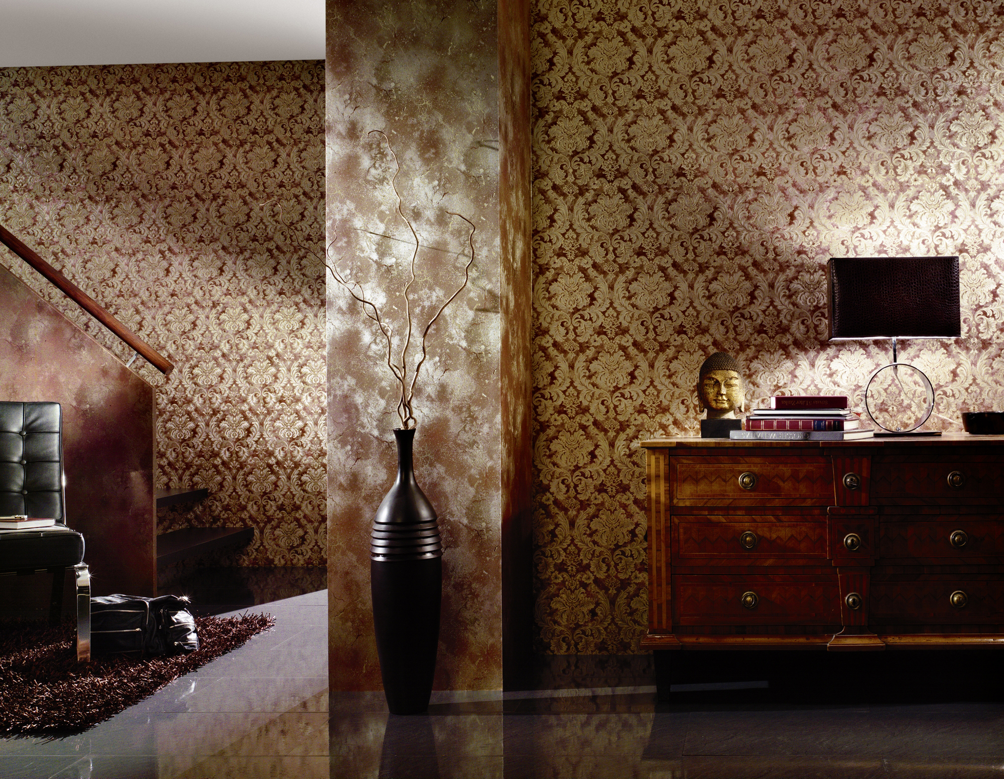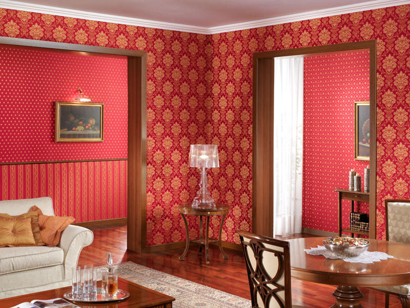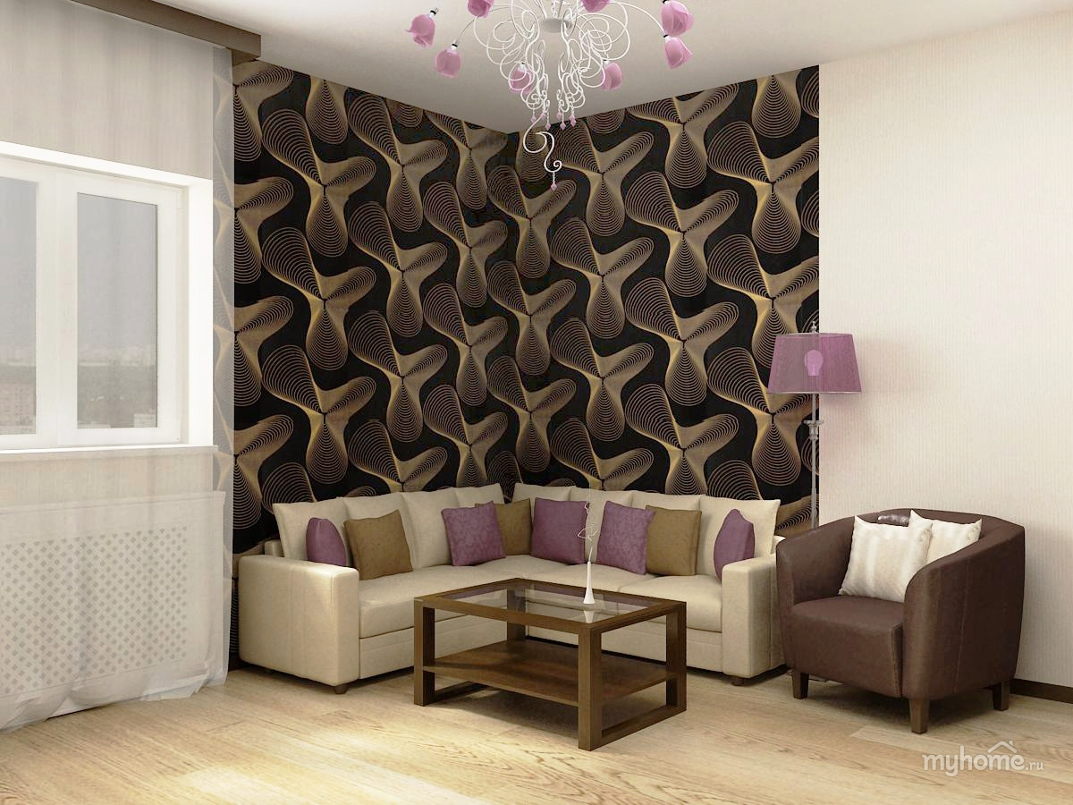 Auf den konvexen Oberflächen der Wand machen Schnitte und fest gepresstes Material an die Wand. Diese Methoden sind für Überlappungen (für breites Hintergrundbild) ausgelegt. Die Zeichnungen dieser Tapeten sind so gestaltet, dass sie Fehler und Projektionen verbergen.