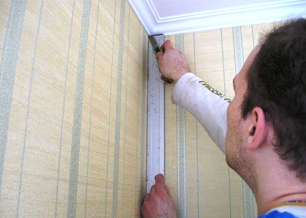 Das Kleben der Ecken mit Tapeten ist selbst für einen Anfänger eine schwierige Aufgabe.