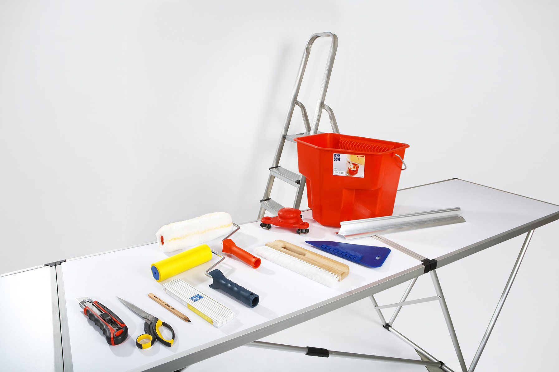 - weiches trockenes Tuch oder Tapetenbürste (um Luftblasen zu entfernen);