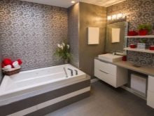 Um die Wände im Badezimmer zu tapezieren, verwenden Sie Zusammensetzungen mit Anti-Pilz-Additiven sowie waschbare Arten von Beschichtungen. Sie behalten ihr ursprüngliches Aussehen länger.