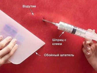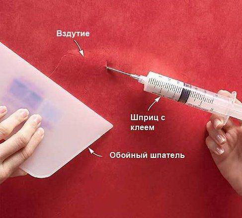 - Stark verschmierte Wände mit Kleber. Wenn Sie einen kleinen Abschnitt verpassen, kann er anschwellen. Es gibt einen Ausweg - Sie müssen mithilfe einer Spritze Klebstoff unter die Leinwand legen.