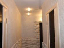 Die Materialmenge kann reduziert werden, wenn Sie planen, die Wand teilweise zu ummauern oder die Hervorhebung zu betonen. Um zum Beispiel das gleiche Niveau der Wand hervorzuheben, kann es notwendig sein, ein oder zwei Streifen gewalzter Sorten hervorzuheben oder eine Platte oder die Rückseite eines Gestells mit flüssiger Tapete herzustellen.