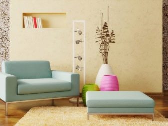 Flüssigtapeten sind verpackte Materialien, es ist eine Art Alternative zum Rollen von Analoga, die in der nahtlosen Technologie inhärent ist. Dieses Finish hat drei Sorten (Zellulose, Seide und Zellulose), von denen jede ihre eigenen Nuancen und Volumen hat. Flüssigtapete verkauft in 1 kg-Verpackungen in zwei Varianten: auf der Basis von Pulver, ähnlich wie Sägemehl mit Kleber Imprägnierung, und eine dicke Mischung, gebrauchsfertig, für die letztere wurden genannt "feuchte Tapeten." Das mit Wasser verdünnte Material ist eine pastöse Masse, die wie dekorativer Putz auf die Oberfläche der zu behandelnden Wände aufgetragen wird.