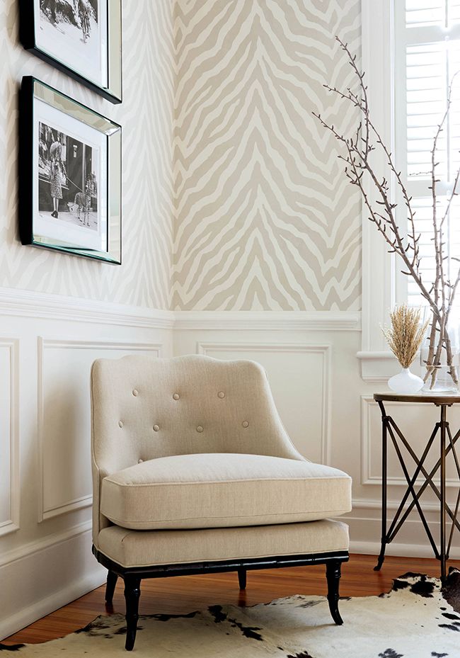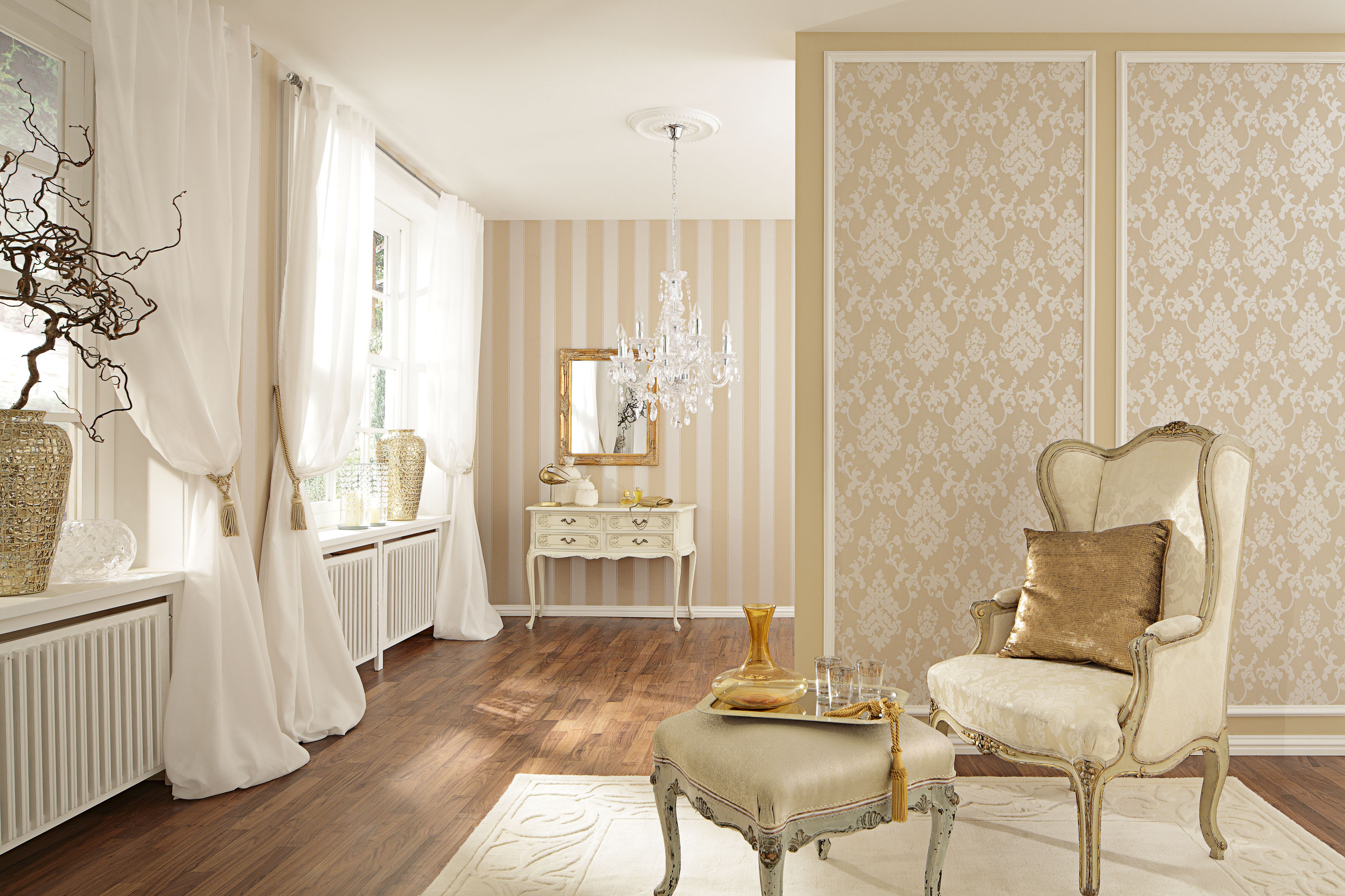- Siebdruck - Optionen mit geprägter auf Vinyl basierender, doppelschichtiger Tapete mit dem Aussehen von Seidenstoffen;