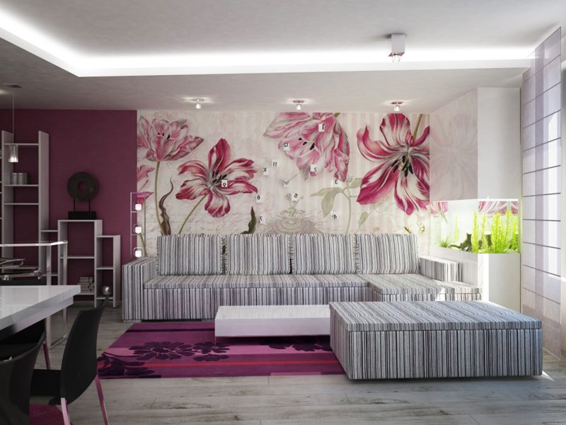 Die Nachteile von Tapeten mit Print sind die Masse der Rückstände.Darüber hinaus kann es bei der Bearbeitung von Ecken aufgrund der Krümmung der Wände und des Höhenunterschieds zu Abweichungen im Muster kommen, und es ist bei weitem nicht immer möglich, das Muster der Platten so genau wie möglich zu kombinieren. Es ist wichtig, das Einfügen äußerst sorgfältig durchzuführen, indem jedes Element des Bildes kombiniert wird. nicht ziehen und nicht tapezieren. In diesem Fall ist die individuelle Musterwiederholung der Schlüsselindikator der Berechnungen. In der Regel ist es in Versionen mit Blumendruck kleiner als in Produkten mit Monogrammen und geometrischen Figuren. Beim Kauf von Tapeten mit einem Druck erhöht sich der Verbrauch an Veredelungsmaterial normalerweise um etwa 2 Rollen.