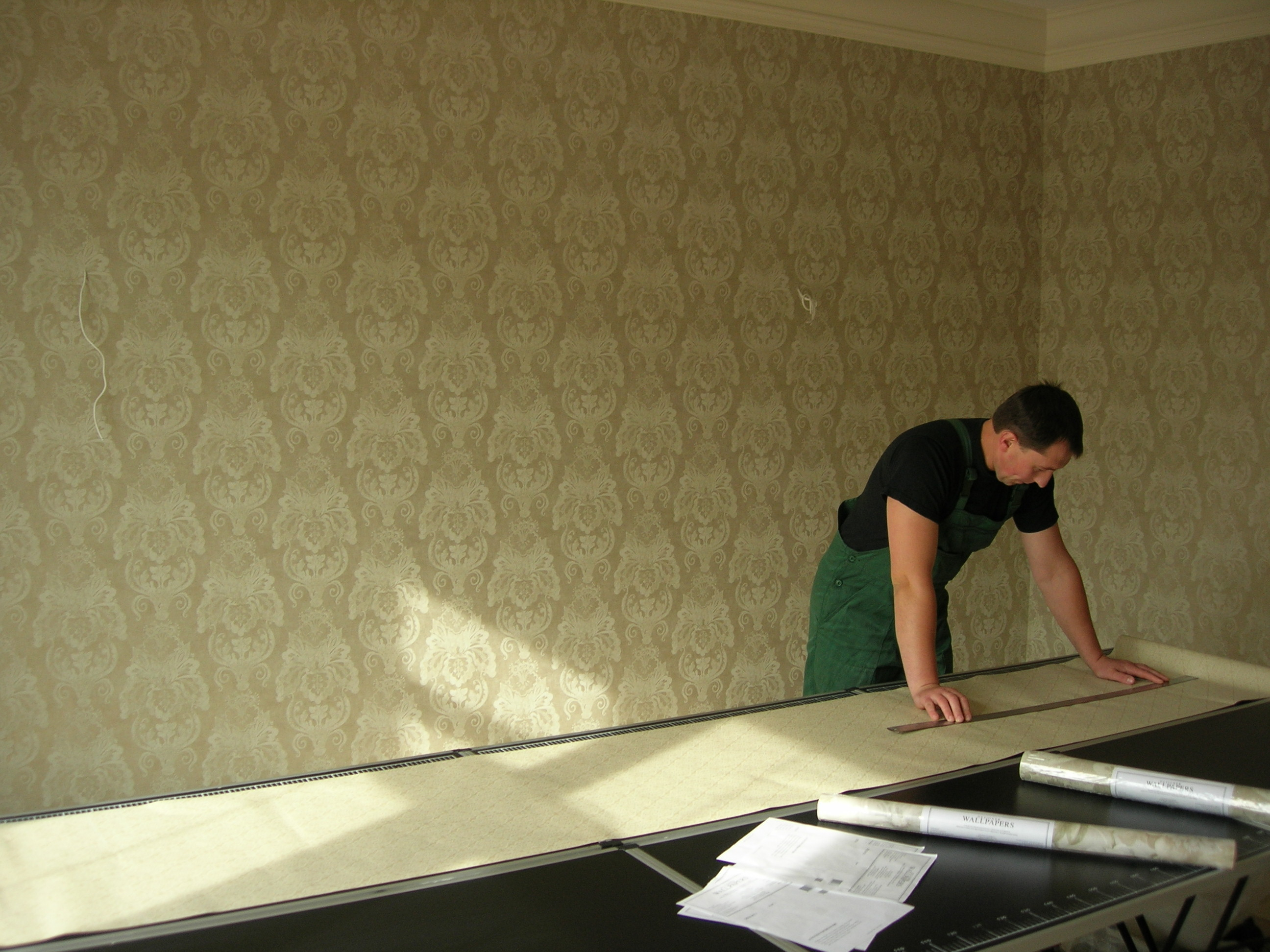 Außerdem spielt die Dicke der Tapete eine Rolle. Zum Beispiel sind dünne Sorten in der Lage, zu schrumpfen, nachdem Klebstoff auf ihren Rücken aufgetragen wurde. Dichte Materialien können in der Länge variieren, so dass ein kleiner Materialvorrat für jeden Streifen erforderlich ist, um die Ober- und Unterseite des Stoffes auszurichten. Es wird zur Berechnung oder zu jedem Streifen hinzugefügt (ca. 5 cm).