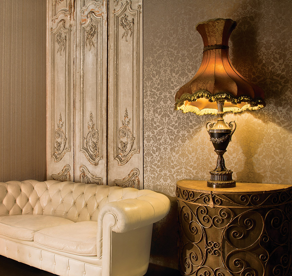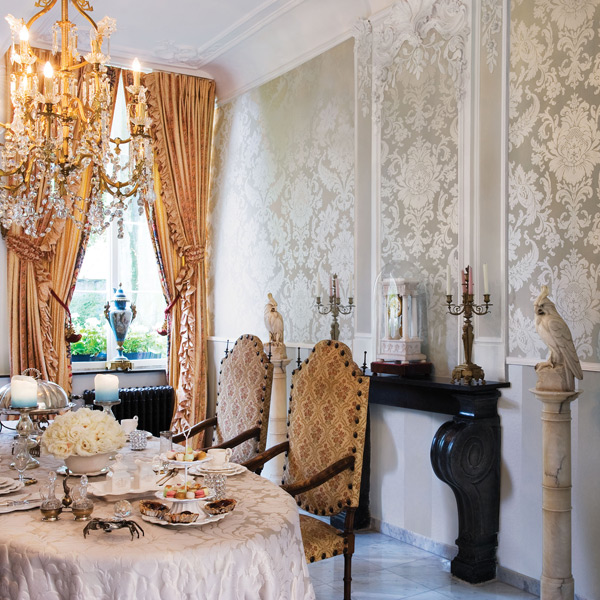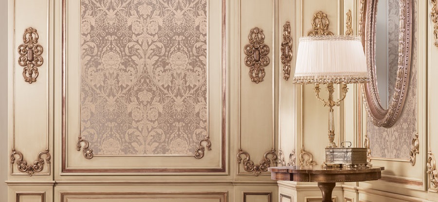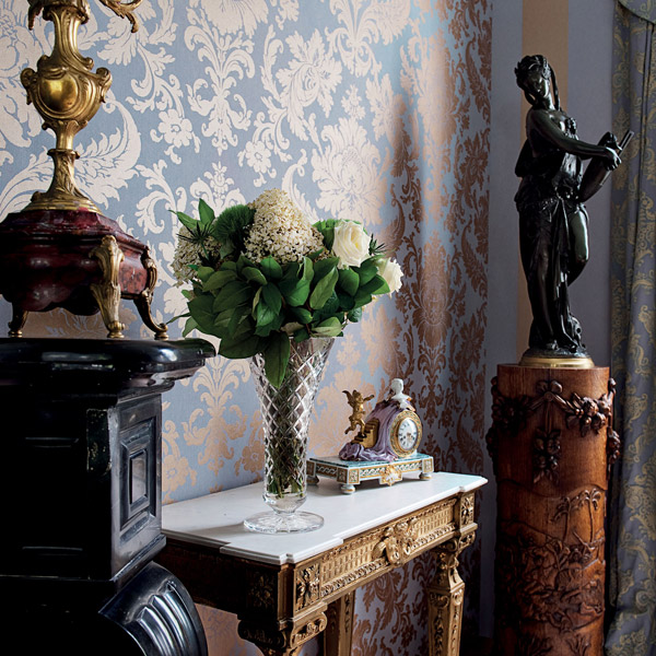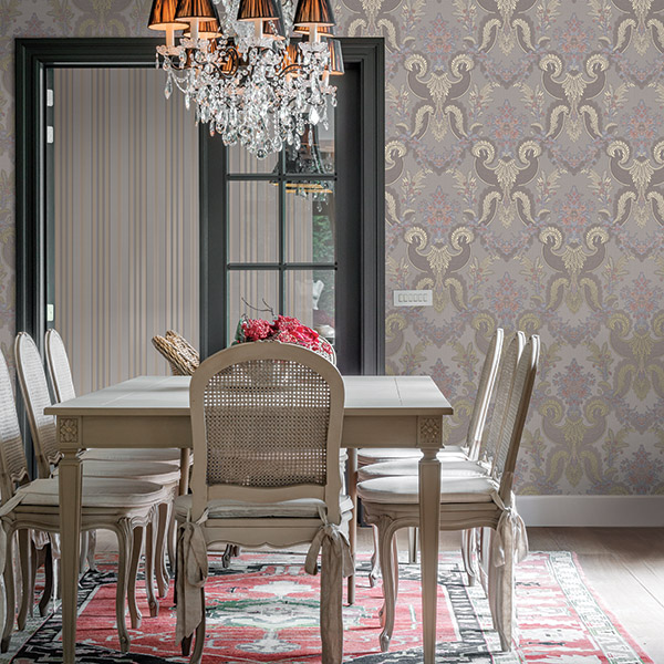 Die allererste Kollektion der Marke ist eine anspruchsvolle klassische Tapete. Traditionelle Damaste, raffinierte Muster und dezente Streifen passen zu luxuriösem Barock und elegantem, schlichtem Interieur. Das Farbschema umfasst zarte Pastelltöne und edles kastanienbraunes Gamma.