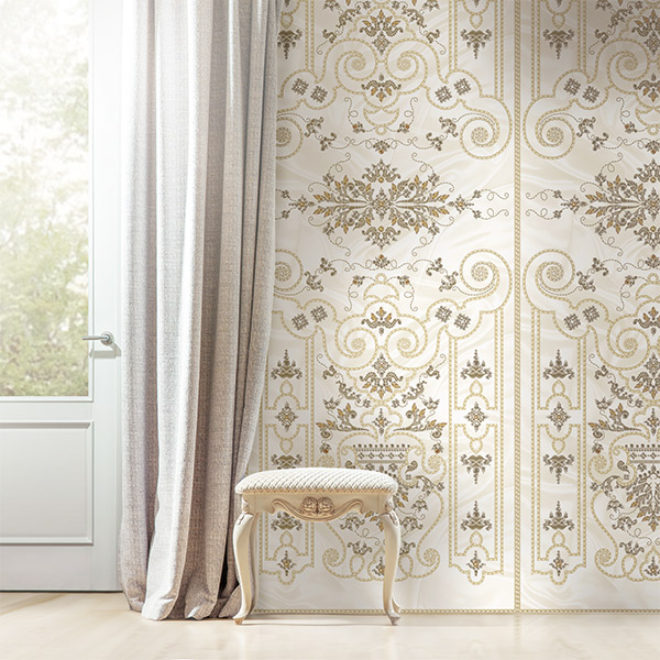 Vier Versionen des klassischen Designs werden mit luxuriösen Tapeten mit der Wirkung der Textilbeschichtung präsentiert. Die innovative Technologie des Farbauftrags verleiht der Leinwand das Volumen der Ornamente und satinglänzenden Glanz. Wanddekoration Tapete "Renaissance" würdig sogar der königlichen Wohnungen. Mit Hilfe dieser Sammlung können Sie eine solche Umgebung zu Hause erstellen.
