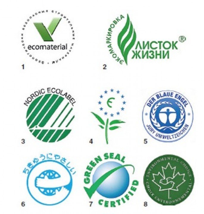 Viele Hersteller von Tapetenmaterialien versuchen, umweltfreundliche Produkte herzustellen, um die Sicherheit nicht nur der Menschen, sondern auch der Umwelt zu maximieren. Zu diesem Zweck eine zusätzliche Inspektion und Zertifizierung in der Produktion und in speziellen Labors.Nach ihrer Fertigstellung werden die entsprechenden Dokumente ausgestellt und bestimmte Markierungen auf der Tapete angebracht, die die Sicherheit des Produkts bestätigen. Derzeit sind einige der wichtigsten Umweltzeichen: