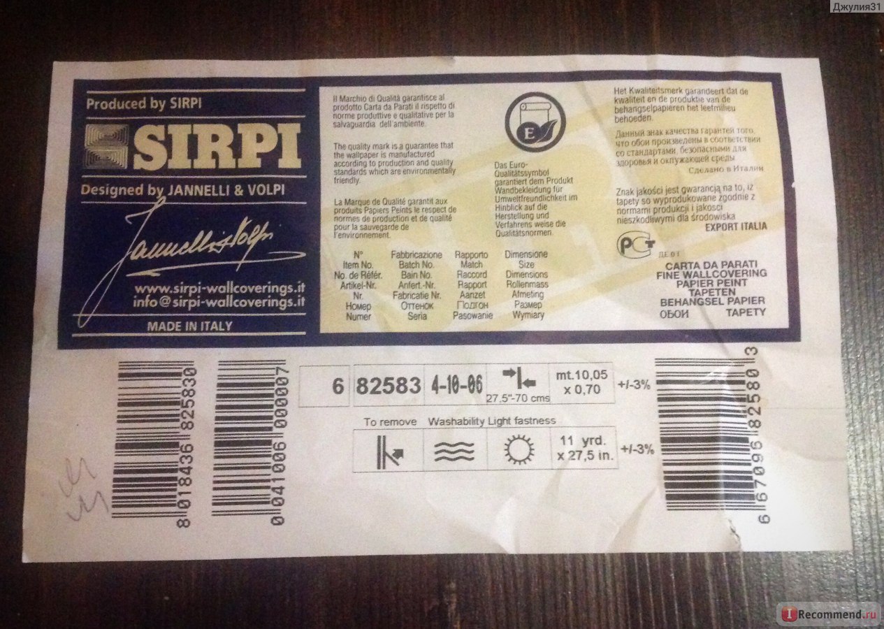 Jede Art von Tapete hat zwingend die Buchstabenabkürzung. Diese Symbole zeigen an, aus welchem Material diese Beschichtung besteht. Dies ist notwendig, um das richtige Material für die Fertigstellung der Räumlichkeiten auszuwählen. Verwenden Sie zum Beispiel für die Küche nie Papiertypen von Tapeten, da diese sehr schnell unbrauchbar werden. So kann der Schriftzug wie folgt aussehen: