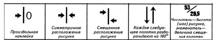 Die letzte Markierung gibt an, wie stark die Leinwand verschoben werden muss, um ein vollständiges Bild zu erhalten. Manchmal wird die Zahl 64 anstelle von 53 gefunden. Dies bedeutet, dass eine direkte Anpassung des Musters erst nach 53 oder 64 cm möglich ist.