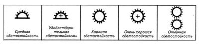 - Zeichen, die auf zeigen Widerstand verblassen (von der Sonne bezeichnet). Auch hier gibt es eine Spreizung vom Kleinsten bis zum Maximum. Das heißt, die durchschnittliche Lichtechtheit zeigt an, dass die Tapete bei längerem Kontakt mit den Sonnenstrahlen schnell verblasst. Ausgezeichnete Lichtechtheit bedeutet, dass solche Produkte ganzjährig den Sonnenstrahlen ausgesetzt werden können und die Farbe für lange Zeit ihre ursprüngliche Helligkeit behält.