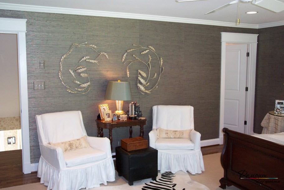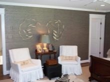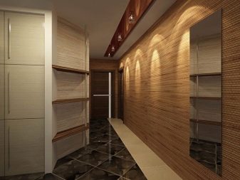 In einem solchen Raum ist es wichtig, die Textur der Tapete mit Möbeln und verschiedenen Accessoires zu kombinieren.Eine große Rolle spielt dabei die Beleuchtung des Raumes, da die Schönheit der Zeichnungen auf den Leinwänden davon abhängt. Gedämpftes Licht im Flur wird die Tapete in einen Schattenpunkt verwandeln.