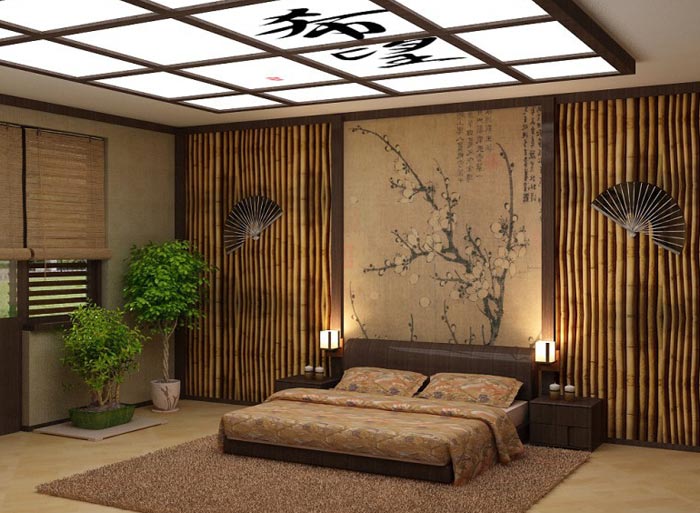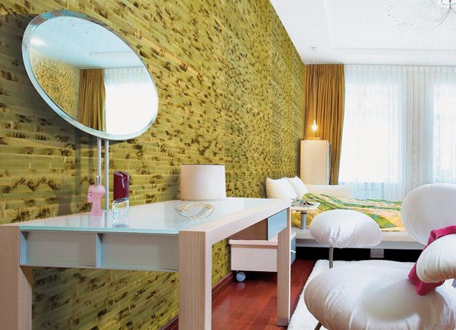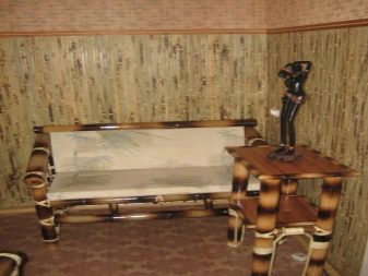 Das mit Bambus verkleidete Zimmer bekommt nicht nur ein exotisches Aussehen, sondern riecht auch schön mit Holz. Im Gegensatz zu herkömmlichen Tapeten ist ein solches Material haltbar und lang.