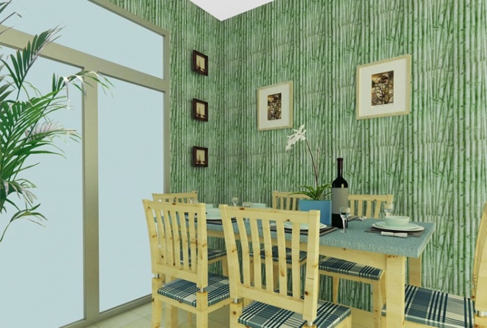 Bambus-Tapeten sind pflegeleicht und eignen sich hervorragend für dieses Zimmer. Um ihre Oberfläche zu reinigen, genügt es, einen Staubsauger oder ein trockenes Tuch zu benutzen. Gleichzeitig ist es unmöglich, Reinigungsmittel bei der Reinigung zu verwenden, da ihre chemische Zusammensetzung den Produkten schaden kann.