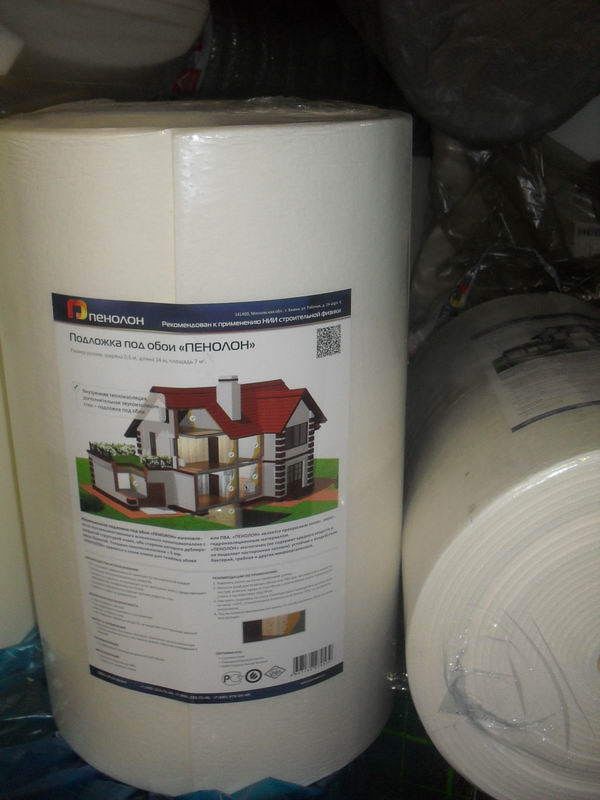- Polyethylen. Es ist ein geschäumtes Polyethylen.Es verbirgt gut die Defekte der Wände, hat eine solche Charakteristik wie Lärmisolierung und speichert Wärme im Haus.