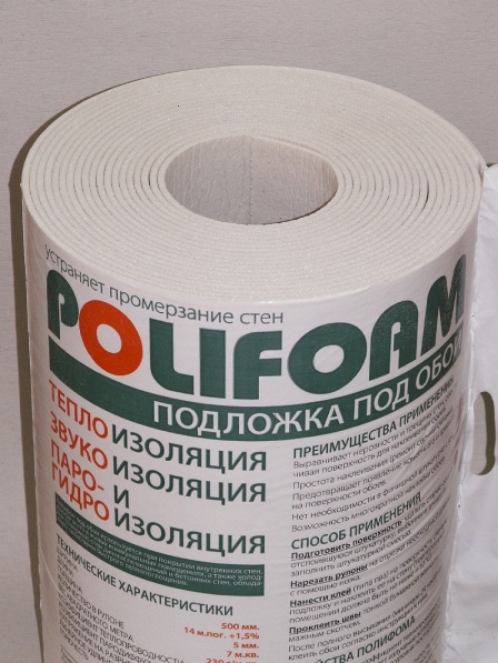 Die Isolierung kann aus verschiedenen Materialien bestehen. Allerdings ist die häufigste Polyphis. Es ist ein geschäumtes Polyethylen. Seine Dicke kann von 4 bis 8 mm variieren. Polifom ist ein umweltfreundliches Material. Auf beiden Seiten befindet sich eine Papierauskleidung.Sie können Polyforms in Form von Rollen in einem Fachgeschäft kaufen. Rollenparameter: