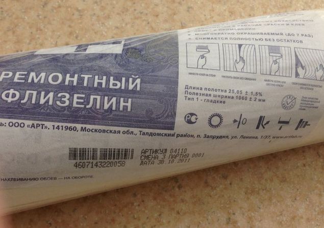 Dies bietet eine hervorragende Belüftung für die Wände und den Raum selbst. Außerdem ist dieses Material sehr elastisch, so dass es unkritische Grunddefekte leicht maskiert und einen geringen Preis hat. Rolled flizelin hat die folgenden Eigenschaften: Länge - 10-12 m, Breite - 0.6-1 M. Die Leinwand kann vertikal und horizontal geklebt werden.