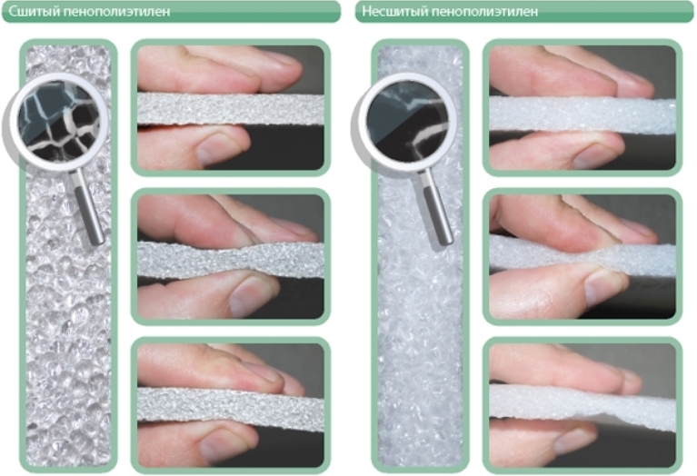 Das einfachste ist nicht vernähtes Polyethylen. Seine Herstellungstechnologie ist die einfachste. Die Festigkeits- und Wärmedämmeigenschaften dieses Materials sind 1/4 weniger und schlechter als der Rest.