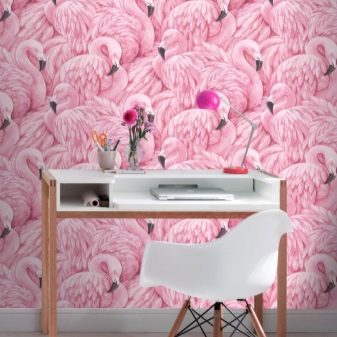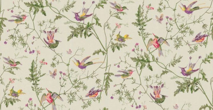 Für romantische Besitzer können Sie Tapeten mit Vögeln aufheben. Produkte im Chinoiserie-Stil werden normalerweise aus Vinyl oder Papier hergestellt. Für den Hintergrund verwenden deutsche Hersteller eine helle Palette, die sich durch Brillanz und Perlmutt auszeichnet.