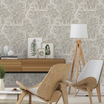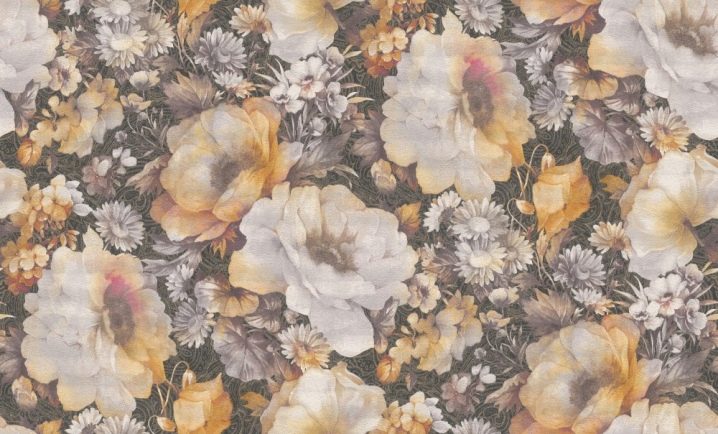 Elite-Kollektionen von beliebten Produkten sind besonders spektakulär in den Farben mit großen Blumen: Rosen oder ausgefallene Knospen. Von ihnen atmet der Geist vergangener Jahrhunderte, die Atmosphäre herrschaftlicher Feste und Boudoirs. Tapeten sehen luxuriös aus und unterstreichen den zarten Geschmack und die Solidität der Besitzer.