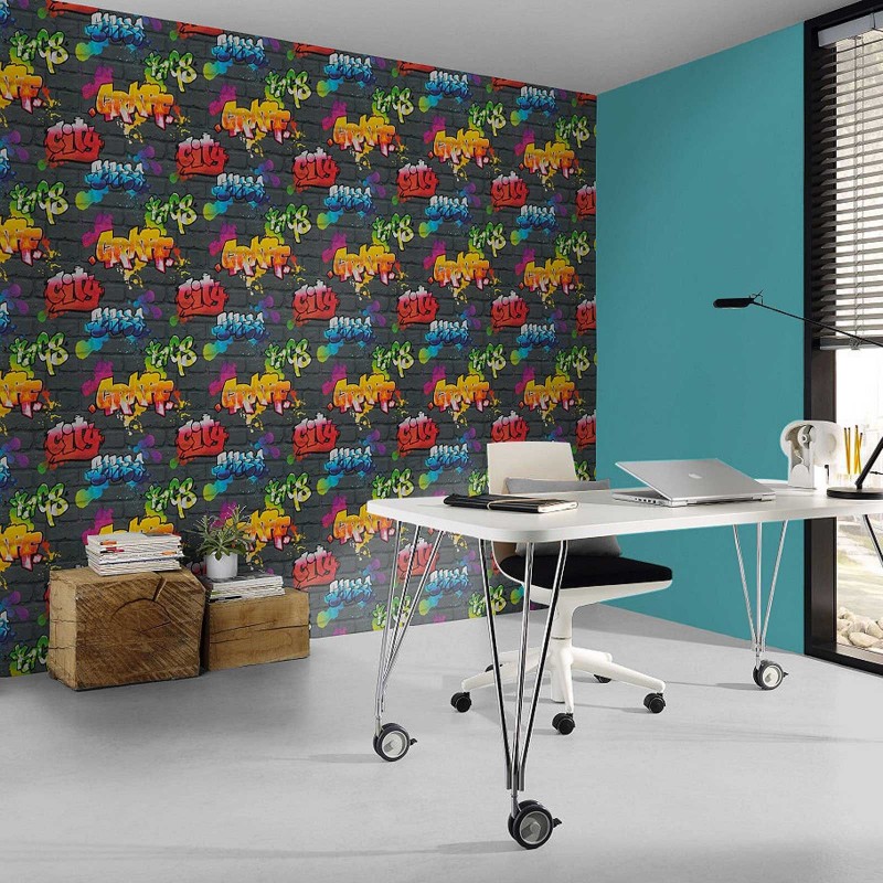 Fototapeten im Stil des Großstadtdschungels oder Tapeten imitiert Mauerwerk aus der neuesten Kollektion des Unternehmens werden nie an Relevanz verlieren.Sie sind auch ideal für Gemälde, in denen das Relief, das sich wiederholende Mauerwerk, erhalten bleibt. Solche Tapeten können im Loft-Stil in Weiß- und Grautönen gehalten sein, was Interesse an der Gestaltung des Kinderzimmers hervorrufen wird. Die Wirkung des sorglosen Ziegellegens in einem Jugendzimmer betont Freiheit und Unabhängigkeit des Charakters.