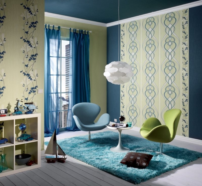 Tapeten mit einer Kombination solcher Figuren entwickeln eine Fantasie und eignen sich besonders für große Räume mit hohen Decken.