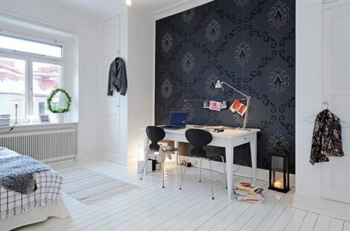 Originale Tapetenmuster verleihen dem Interieur eine besondere Note. Drucke von großen Akzentfiguren bis hin zu kleinen schönen Zeichnungen dienen als originelle Raumdekoration.