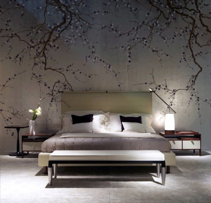 Besonders beliebt sind stilvolle Tapeten mit orientalischen Pflanzenmotiven: Sakura und Lotus. Sie ziehen den Innenraum in einen bestimmten Zustand. Solche Produkte sind ideal für die Gestaltung von Räumen im chinesischen und japanischen Stil. Wände mit einer ähnlichen Beschichtung spiegeln die sinnliche japanische Kultur wider.