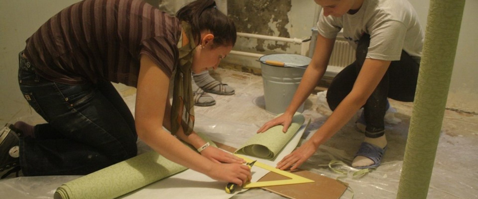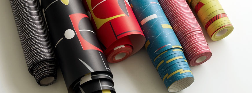 Solche langen Rollen werden zum Aufkleben großer Räume und Hallen verwendet.