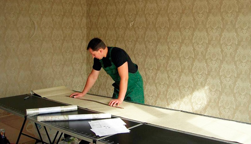 Um die Tapete auf diese Weise zu kleben, muss man sehr vorsichtig sein, sonst sind alle Nähte und Fugen sichtbar.